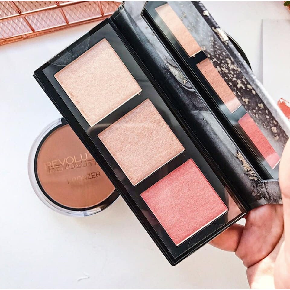 ✅ Bảng gồm 3 ô phấn gồm bắt sáng và má hồng nhẹ nhàng, lâu trôi và không xỉn màu