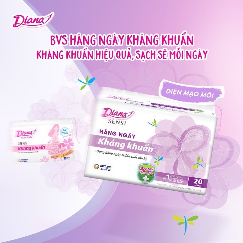 Sức Khỏe > Chăm sóc cá nhân > Chăm sóc phụ nữ > Băng vệ sinh có cánh & không cánh || Băng vệ sinh Diana hàng ngày Kháng khuẩn - gói 40+4 miếng (date 2025)