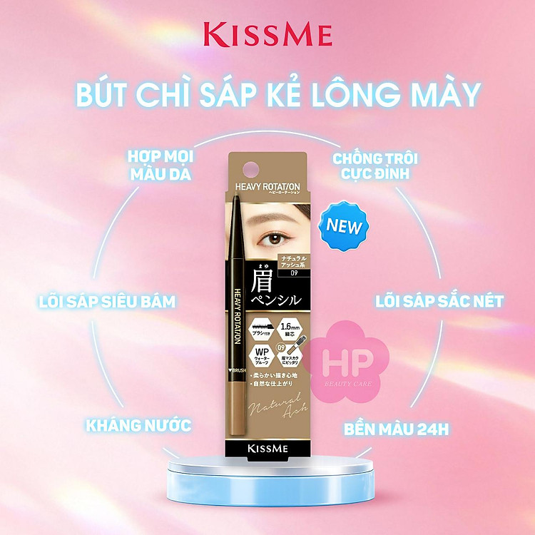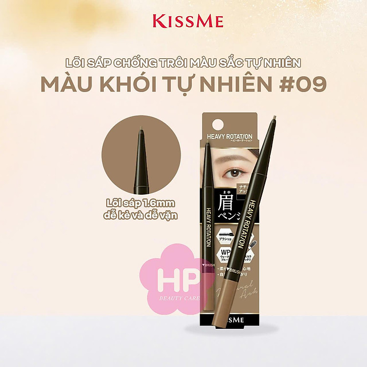 Giới thiệu Bút Chì Sáp Kẻ Lông Mày Lõi Sáp Chống Trôi Màu Sắc Tự Nhiên Màu Khói Tự Nhiên #09 Kissme Heavy Rotation Eyebrow Pencil 0.09 G