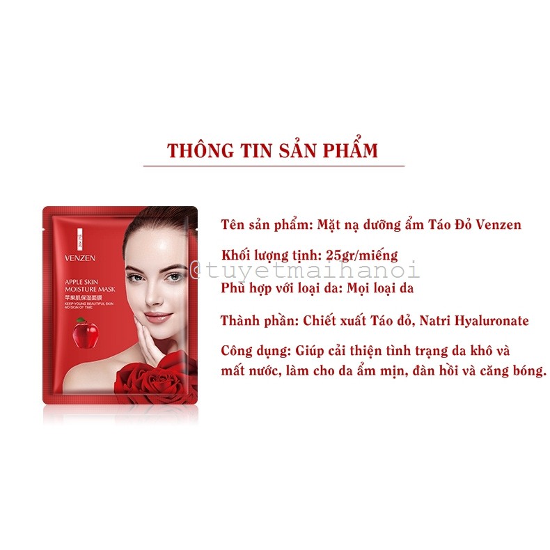 Combo 10 Mặt nạ Táo đỏ dưỡng sáng mịn da tăng độ đàn hồi VENZEN Apple Skin Moisture Mask