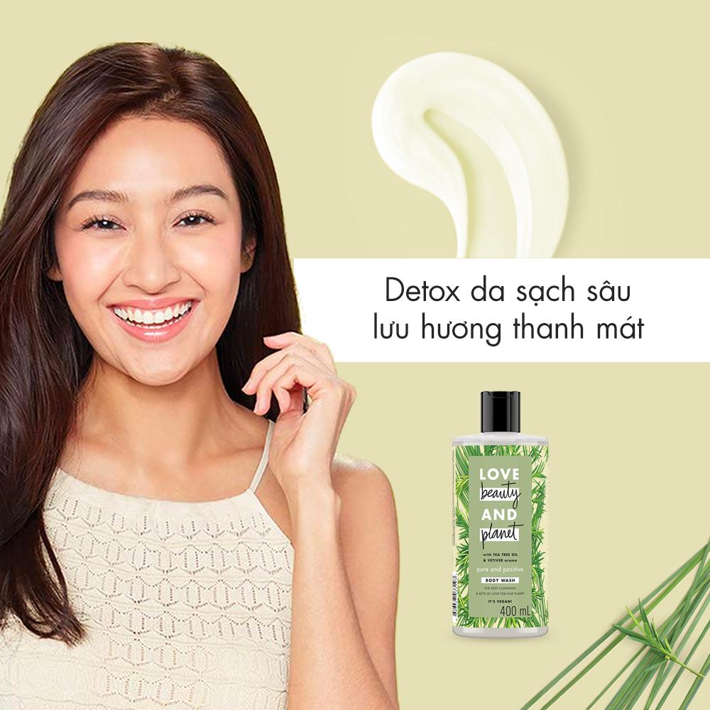Sữa tắm Love Beauty And Planet Pure And Positive detox sạch sâu lưu hương thanh mát với 100% tinh dầu tràm trà Úc