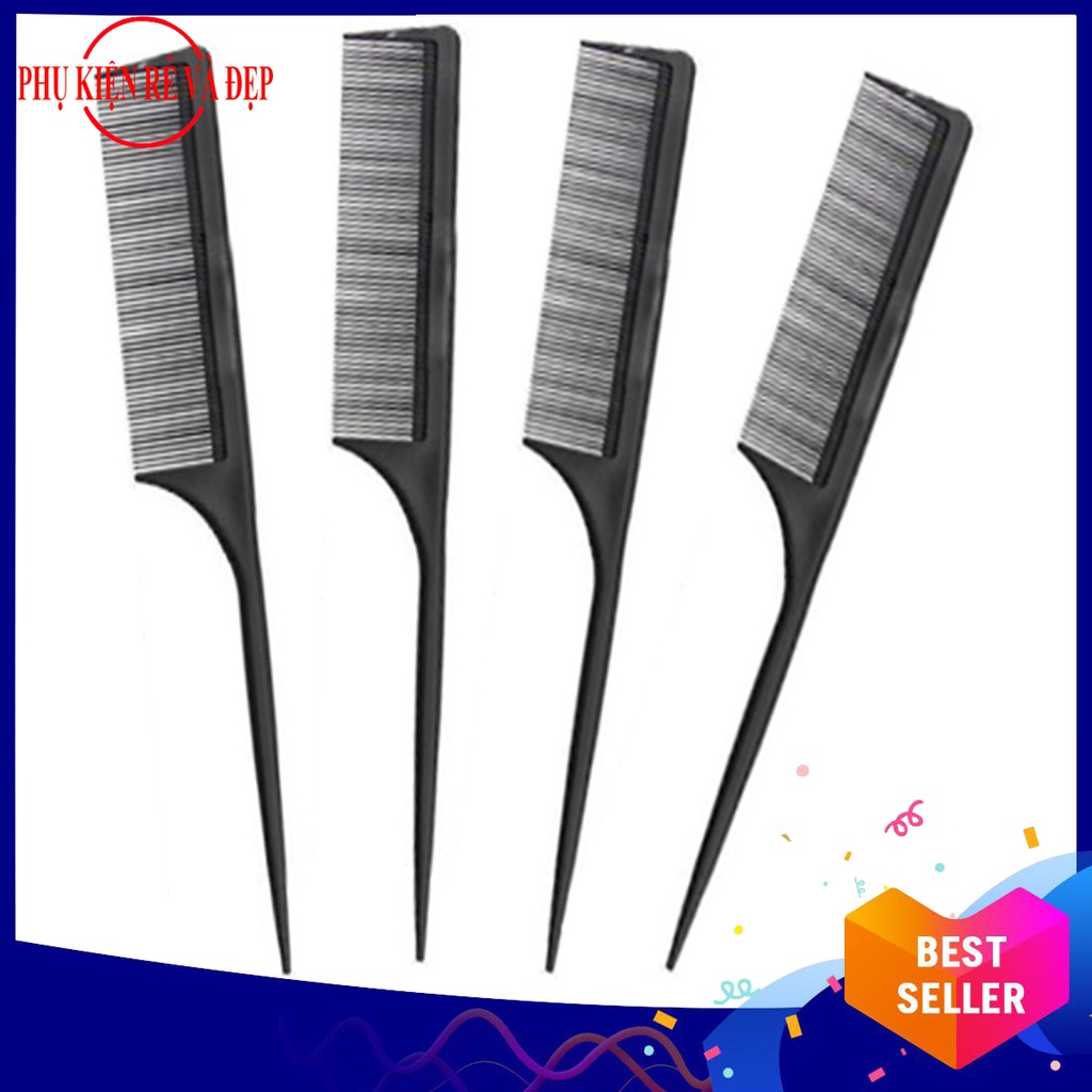 Combo 4 lược chia tóc đuôi nhựa (Đen)
