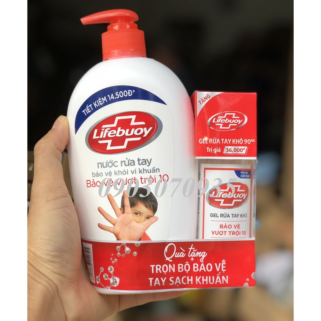 Giới thiệu COMBO Nước Rửa Tay Và Gel Rửa Tay Khô Lifebuoy Bảo Vệ Vượt Trội 10 (Đỏ) 500ml + 90ml