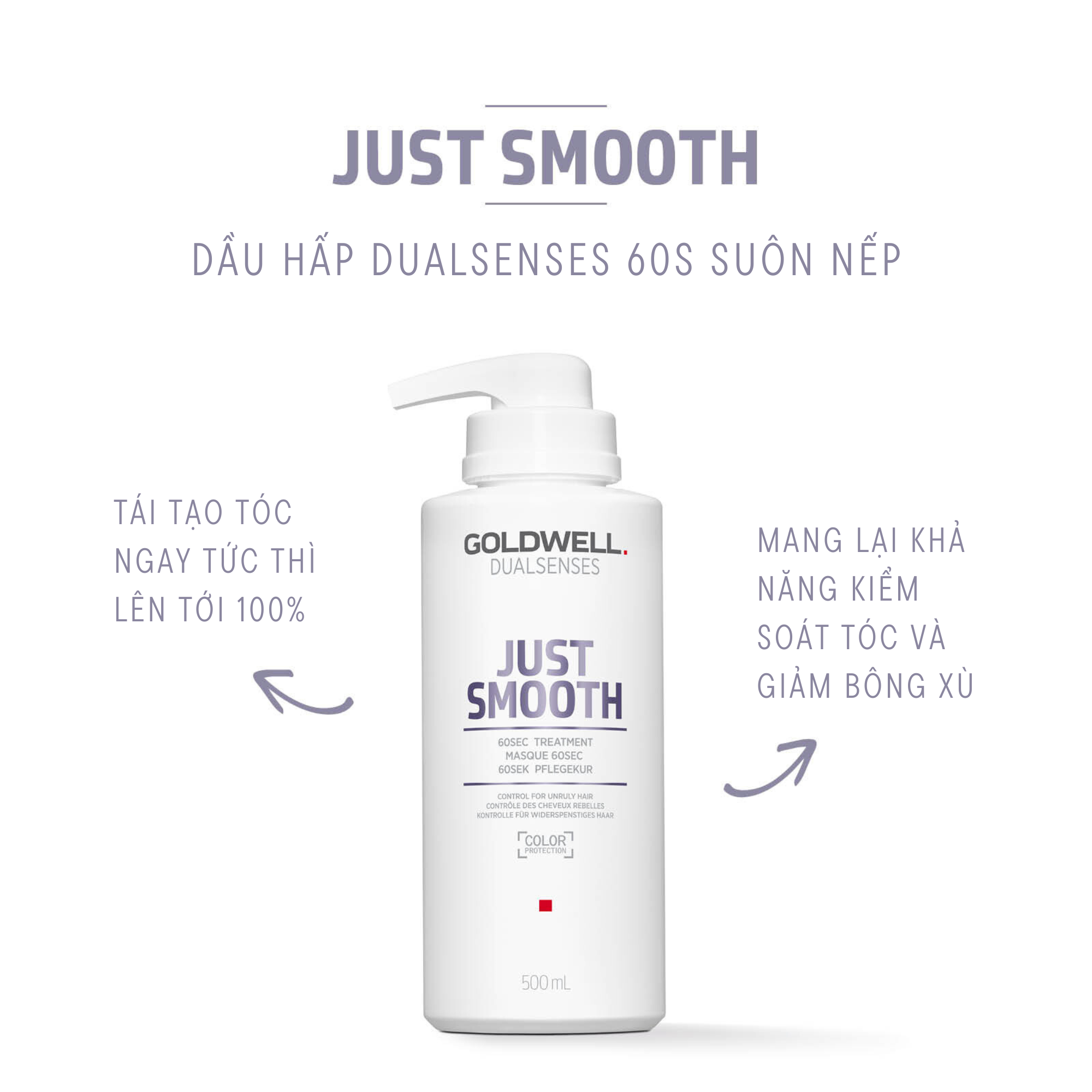 ầu Hấp 60s Dưỡng Tóc Mềm Mượt Goldwell Just Smooth Giảm Bông Xù, Xơ Rối, Kiểm Soát Tóc Tức Thì- Phù hợp với tình trạng tóc:+ Tóc tơ mảnh+ Bông xù, xơ, rối+ Tóc đang gặp tình trạng hư tổn nhẹCÔNG...