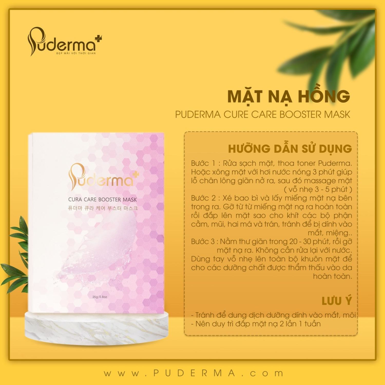 Mặt nạ hồng Puderma Cure Care Booster : thiết kế đặc biệt dành cho Da Dầu, Da Nhờn: dưỡng da, cung cấp độ ẩm sâu cho da, giúp làm giảm lượng dầu, làm mờ vết thâm trên da, giúp làm dịu da.