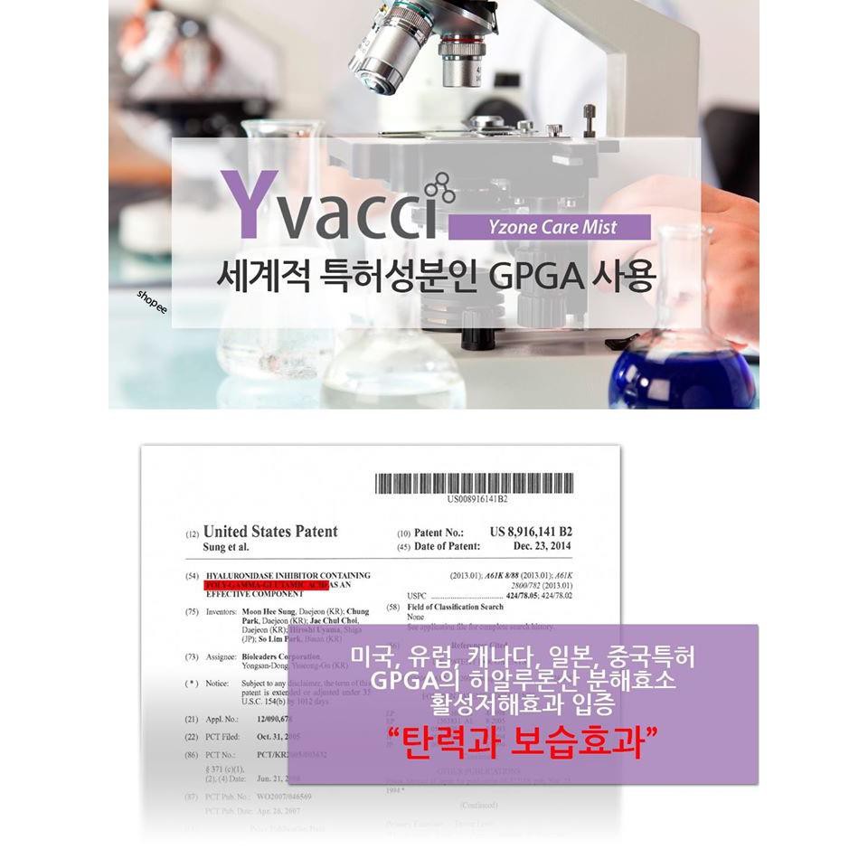 Chế phẩm YVACCI được công nhận bằng sáng chế tại 5 nước là: Mỹ, Nhật Bản, Trung Quốc, Hàn Quốc và Châu Âu với thành phần dược tính chủ yếu GPGA, làm tăng tính an toàn thông qua việc ức chế và phân giải enzym Hyaluronic acid có chức năng kháng viêm. Bên cạnh đó, Yvacci còn giúp dưỡng da, làm đàn hồi da và làm sáng màu da sẫm vùng kín.