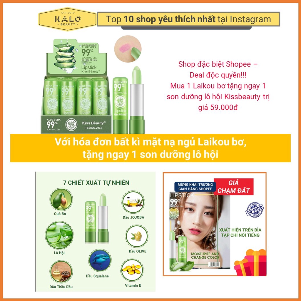 Với mỗi đơn hàng có chứa kem dưỡng bơ Laikou bơ tại Halo Shop sẽ được tặng ngay 1 son dưỡng môi Lô Hội Kissbeauty - đây là deal độc quyền của shop với đối tác thương hiệu!.