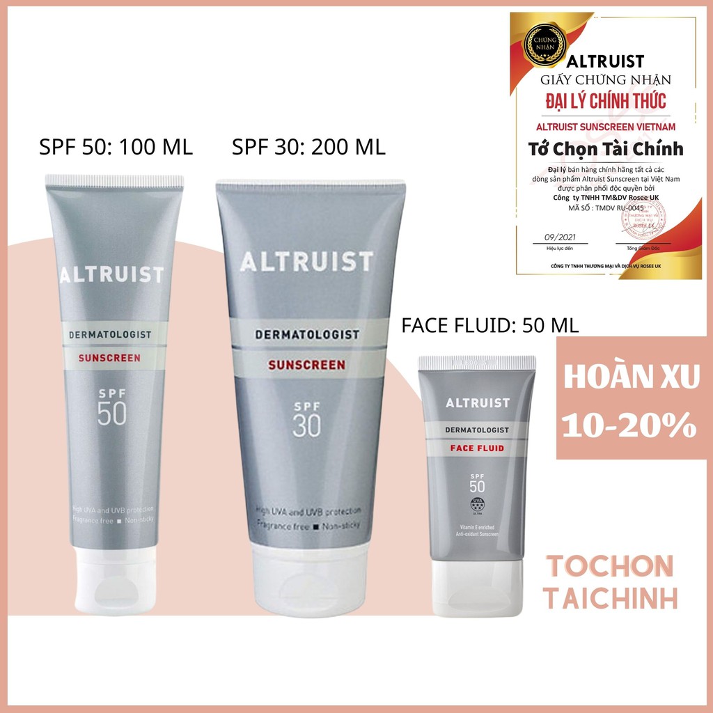 Kem chống nắng Altruist Dermatologist face fluid, Sunscreen spf 30, spf 50 mẫu mới