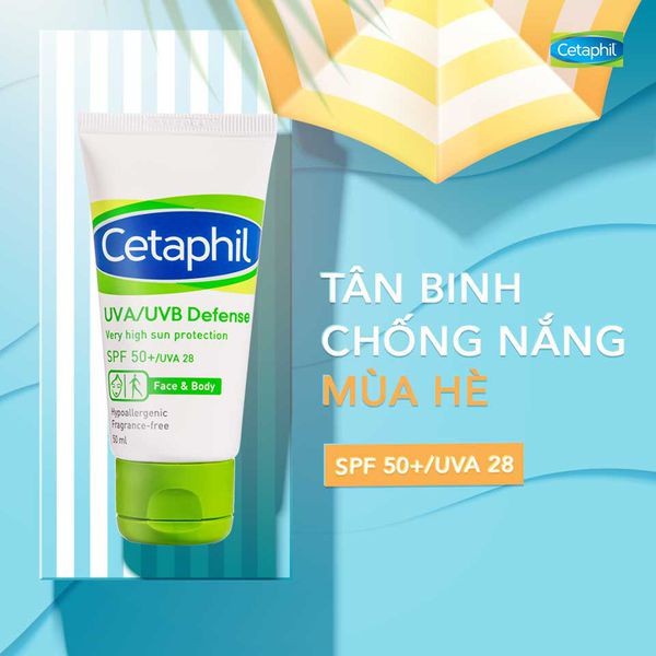 Giới thiệu Kem chống nắng cung cấp màng bảo vệ cao Cetaphil UVA/UVB Defense Very HIgh Sun Protection SPF50+/UVA28 50ml