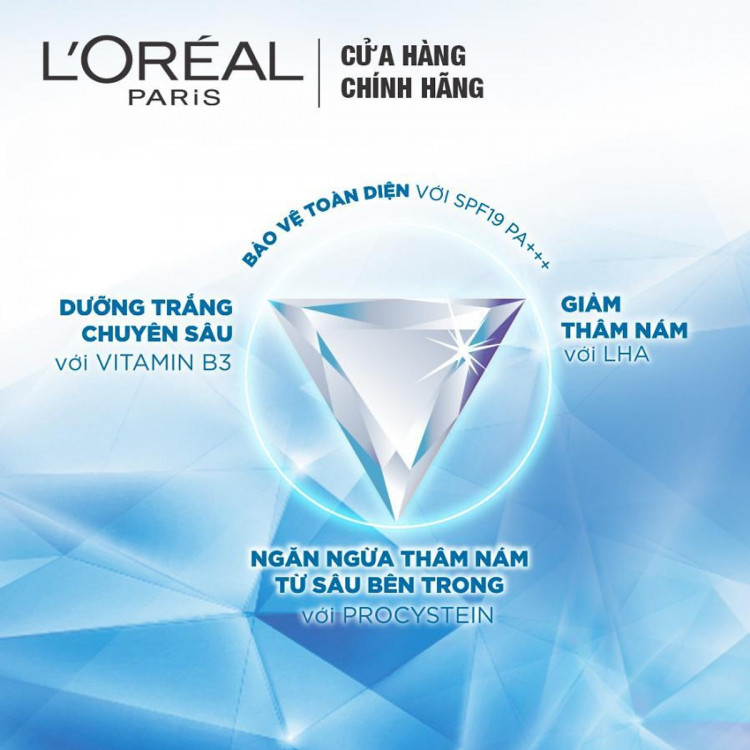 Với công thức Melanin – Vanish TM dưỡng trắng tối ưu suốt cả đêm dài được thương hiệu Mỹ Phẩm L'Oréal nghiên cứu, giúp làn da căng mọng và trắng sáng sau khi thức dậy. Tinh thể đá Tourmalline cùng vitamin E trong sản phẩm L'Oréal giúp thúc đẩy quá trình tuần hoàn dưới da kích thích mang lại làn da không những sáng mà còn ửng hồng rạng rỡ.