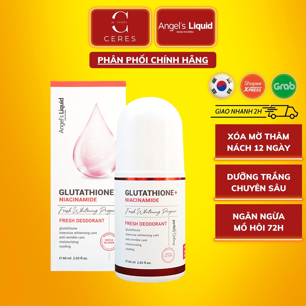 Giới thiệu Lăn Nách Mờ Thâm Angel Liquid Glutathion Plus Niacinamide Fresh Deodorant Dưỡng Trắng Da 60ml