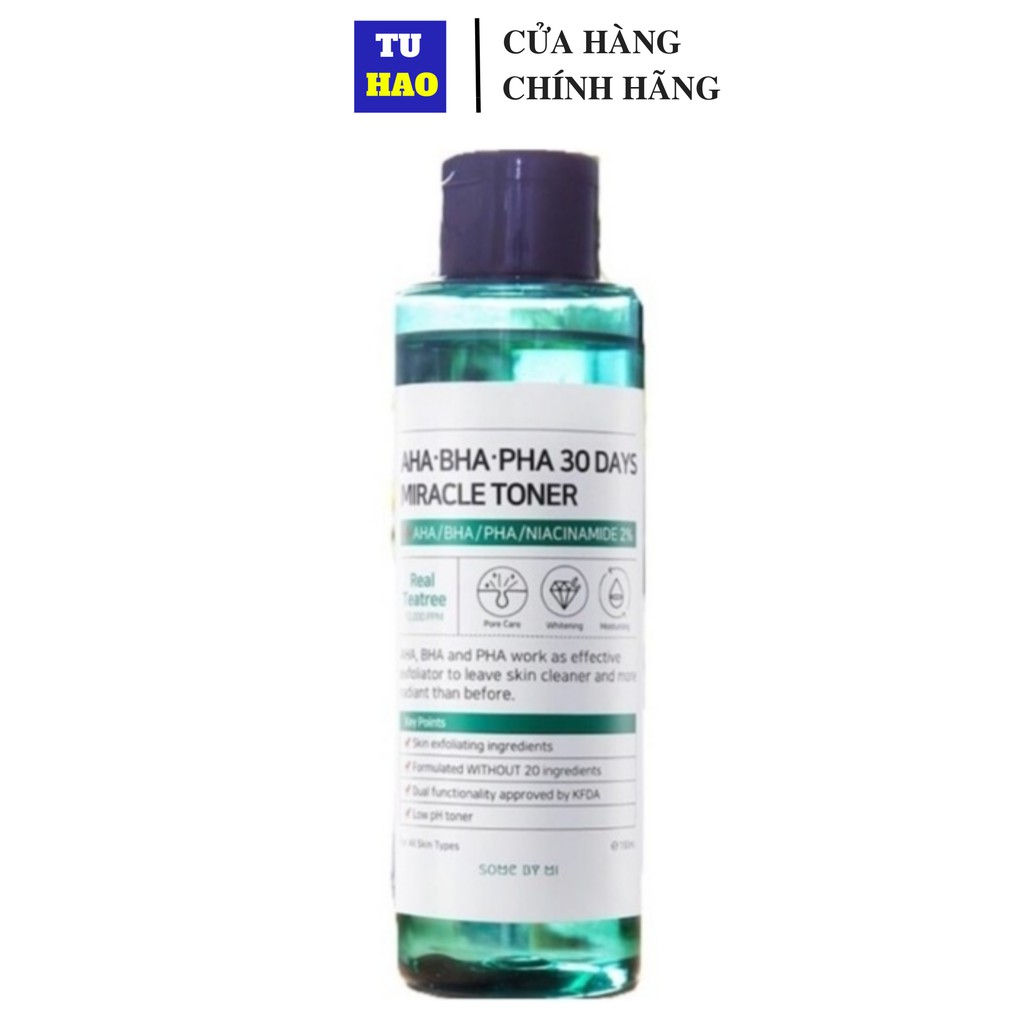 Nước hoa hồng Some By Mi AHA-BHA-PHA 30 Days giảm mụn Miracle Toner 150ml có chứa các hoạt chất giúp làm sạch sâu da hiệu quả