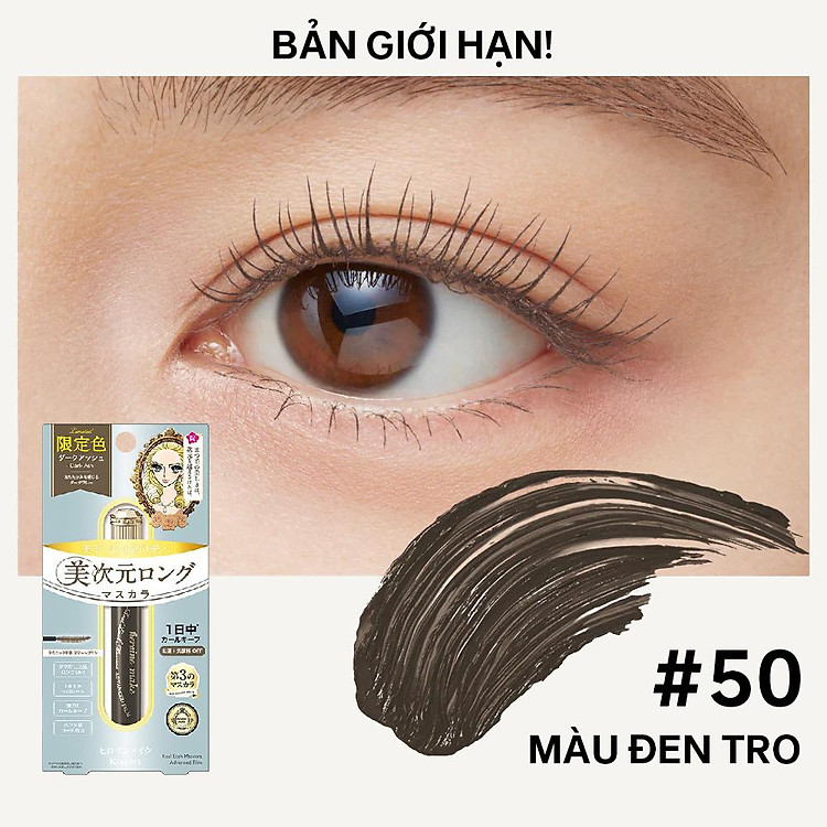 Giới thiệu Mascara Màng Film Cải Tiến Siêu Chống Trôi Làm Cong Và Dài Mi Bản Hoàng Gia Kissme Heroine Make (Màu Đen Tro)