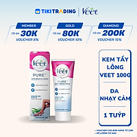 [MỚI] Kem tẩy lông Veet cho da nhạy cảm, hộp lớn 100g tiết kiệm, công thức Pure cải tiến