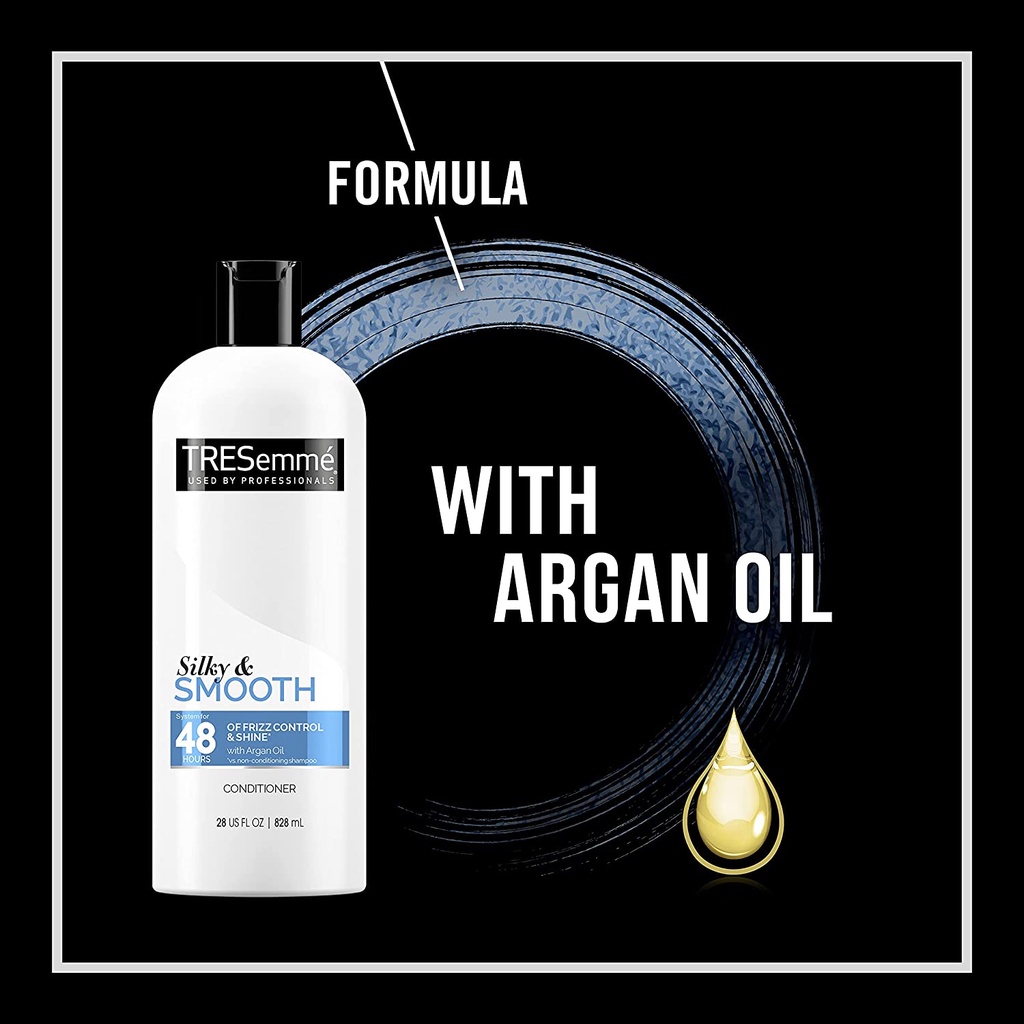 Loại dầu dưỡng làm mượt dành cho tóc xoăn này sẽ khiến mái tóc của bạn trở nên bóng mượt và mượt mà như salon. Hệ thống Dầu gội và Dầu xả TRESemmé Silky & Smooth cung cấp độ ẩm mạnh mẽ ở những nơi tóc bạn cần nhất, làm dịu tóc xoăn và bồng bềnh mà không làm nặng tóc. Hệ thống làm mượt tiên tiến với dầu Argan Ma-rốc này giúp làm sạch và để lại mái tóc mượt mà và mềm mại như salon. Các sản phẩm dành cho tóc bóng mượt này cung cấp 48 giờ kiểm soát tóc xoăn và bóng *.