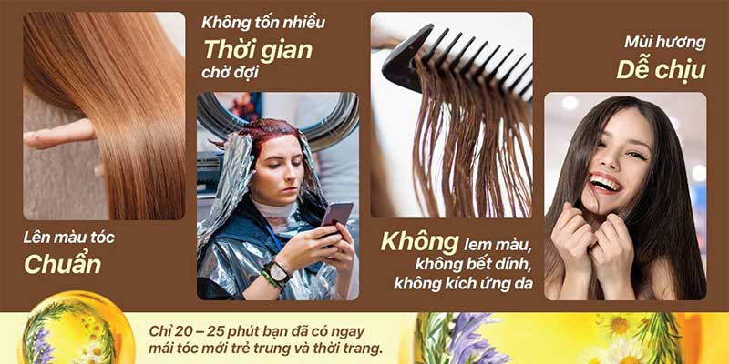 Kem nhuộm ăn màu nhanh và chuẩn sắc, chỉ sau 20 – 25 phút là bạn đã có ngay mái tóc mới trẻ trung và thời trang.