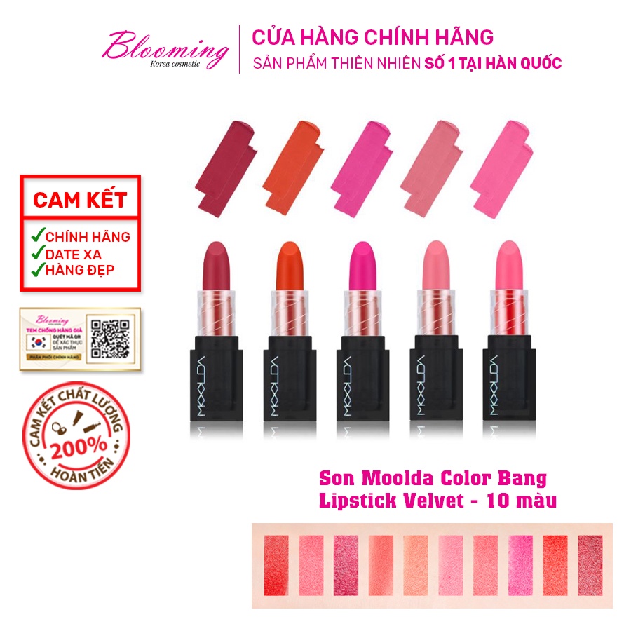 Bộ sưu tầm 10 màu son Moolda Color Bang Lipstick Velvet