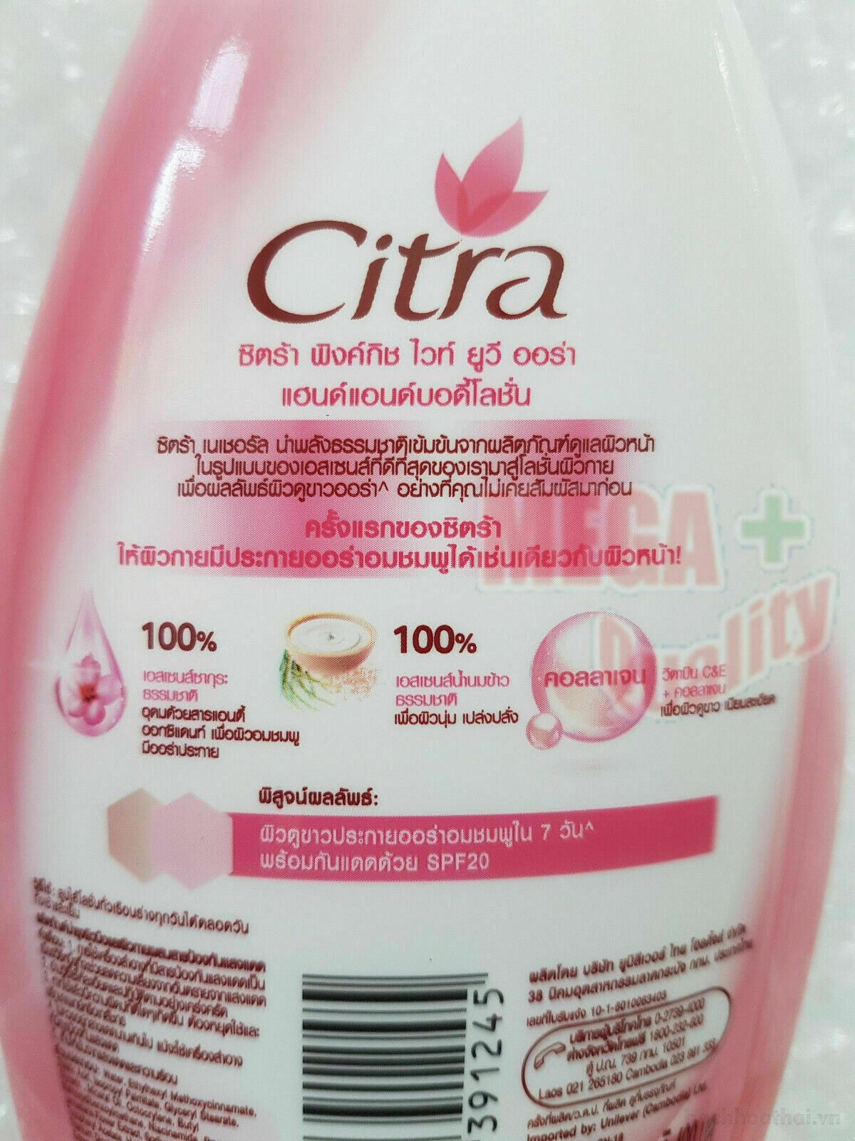 Sữa dưỡng thể trắʼng da chốnǥ nắng Citra Pinkish Glow UV AuraSữa dưỡng thể trắʼng da chốnǥ nắng Citra Pinkish Glow UV AuraSản phẩm của: Unilever ThailandSố đăņg ký FDA: 10-1-6300038121