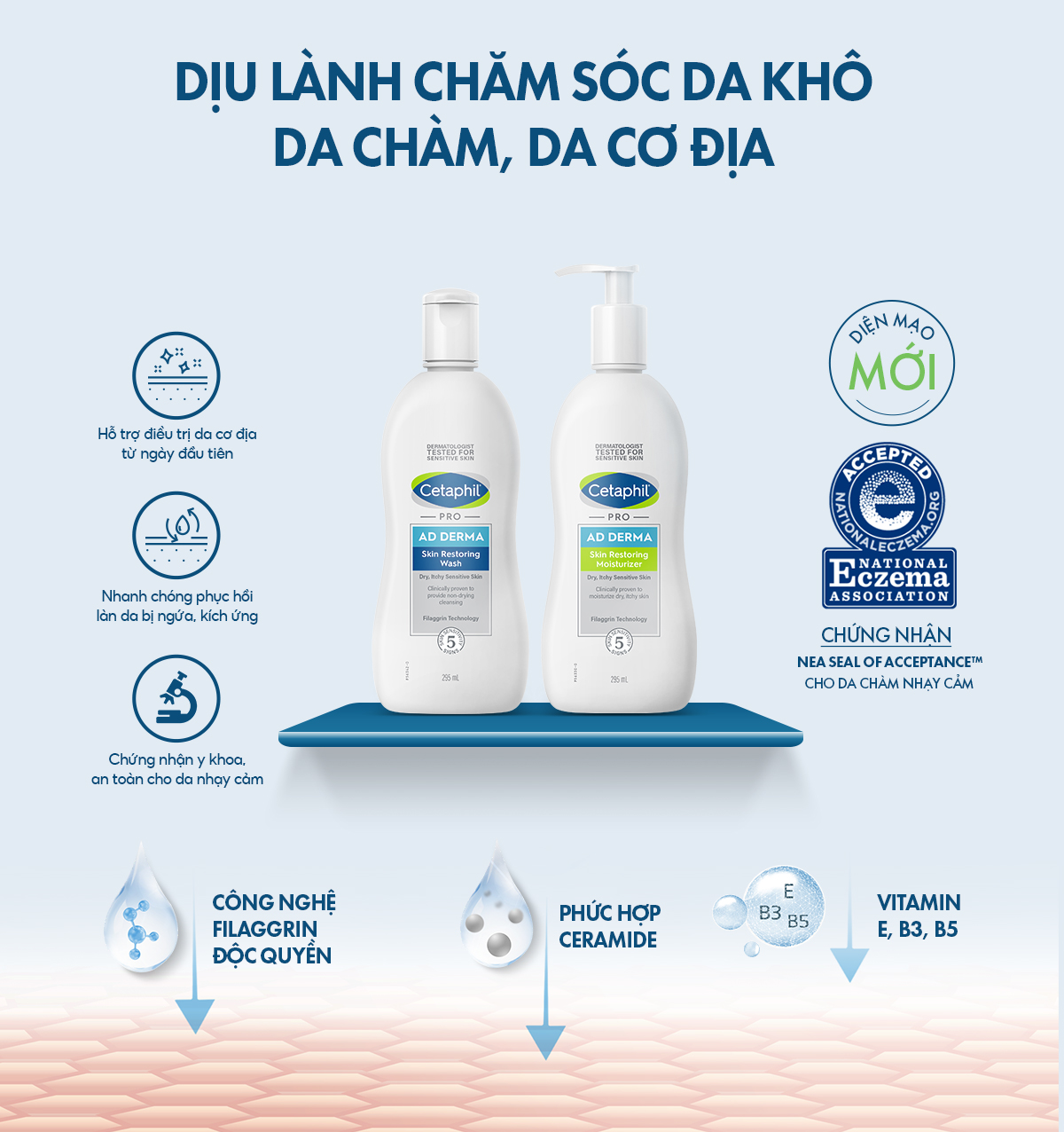 - Với công thức kết hợp từ 9 hoạt chất dưỡng ẩm, vitamin E, B3 và ứng dụng công nghệ Filaggrin độc quyền, giúp giảm thiểu các triệu chứng da chàm và khôi phục màng ẩm tự nhiên trên da và đẩy lùi 5 dấu hiệu nhạy cảm của làn da: khô, căng, kích ứng, không mịn màng và nhất là làm suy yếu hàng rào bảo vệ tự nhiên của da.