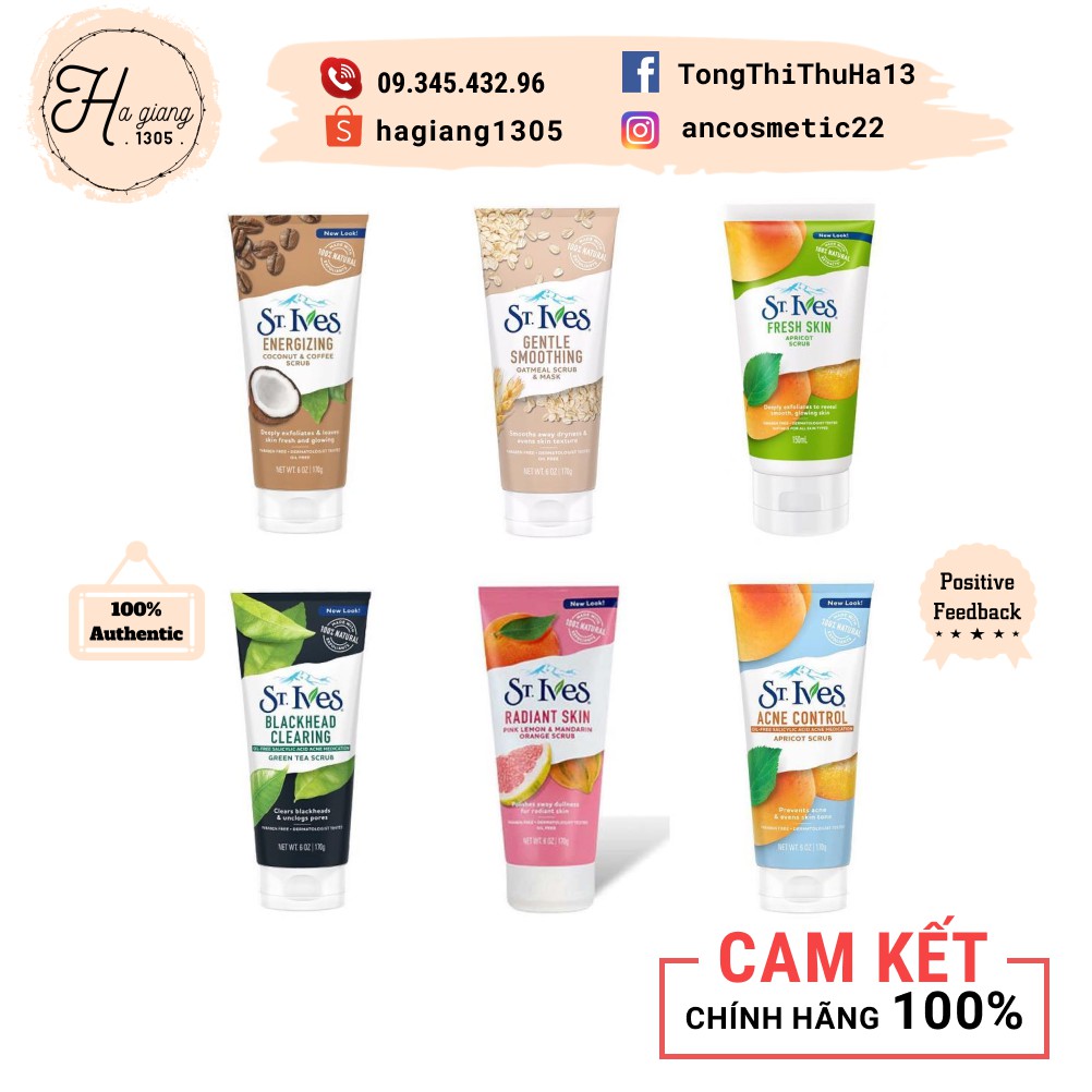 Giới thiệu Tẩy tế bào chết St.Ives Scrub đến từ Mỹ đủ vị trà xanh, lúa mạch, mơ