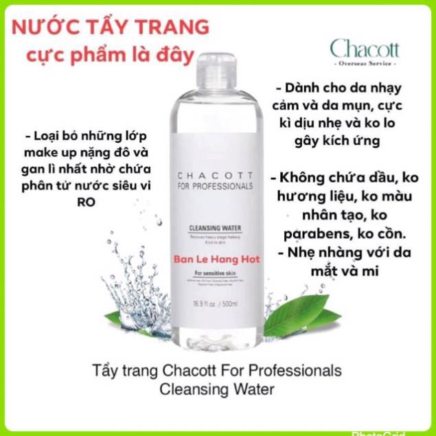 - Nước tẩy trang thần thánh Chacott chai siêu to khổng lồ nè mấy chị ơi!!! Chai 500ml xài bao đã luôn!!! Tẩy trang sạch cực kỳ mà da cứ gọi là mềm mướt mịn, không có bị khô đâu nha!!!!