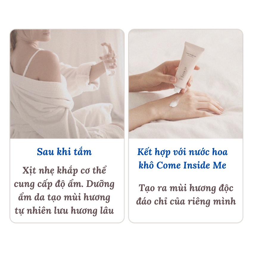 - Xịt thơm toàn thân Come Inside Me được tạo ra dựa trên nền tảng nhiệt độ cơ thể con người 36.5 độ C